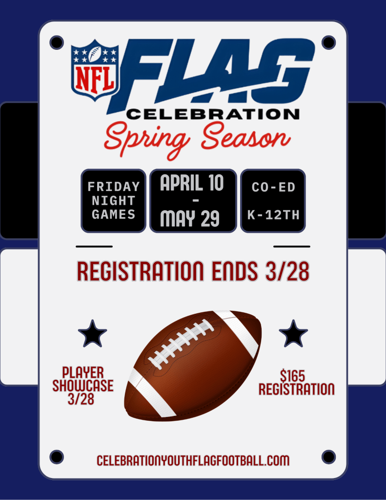 NFL FLAG is a fun and accessible non-contact program for girls and boys grades Kindergarten – 12th grade. Sports have the power to transform athletes and unite communities… Backed by the NFL with an emphasis on football fundamentals and community involvement, NFL FLAG is here to empower youth athletes across the nation.